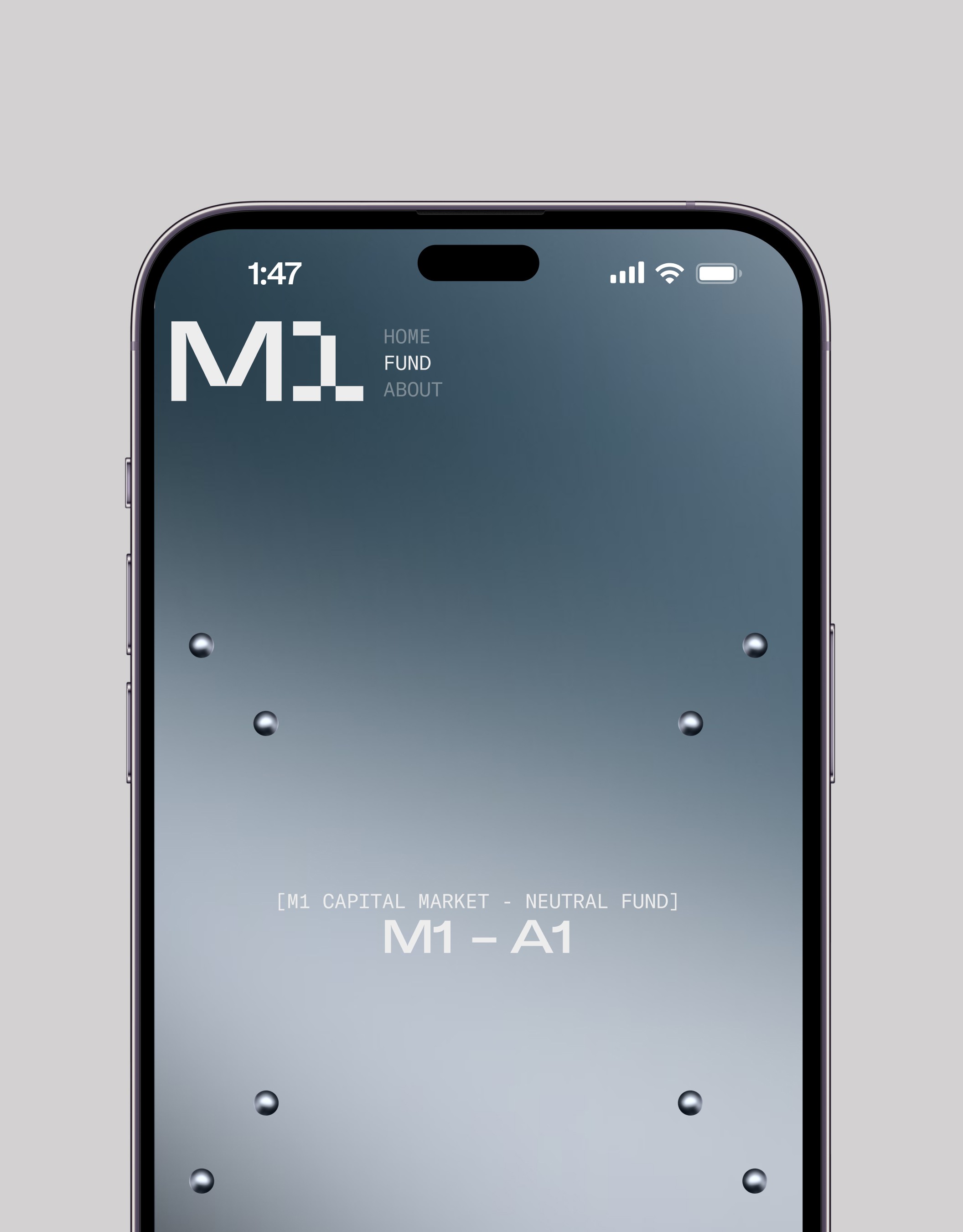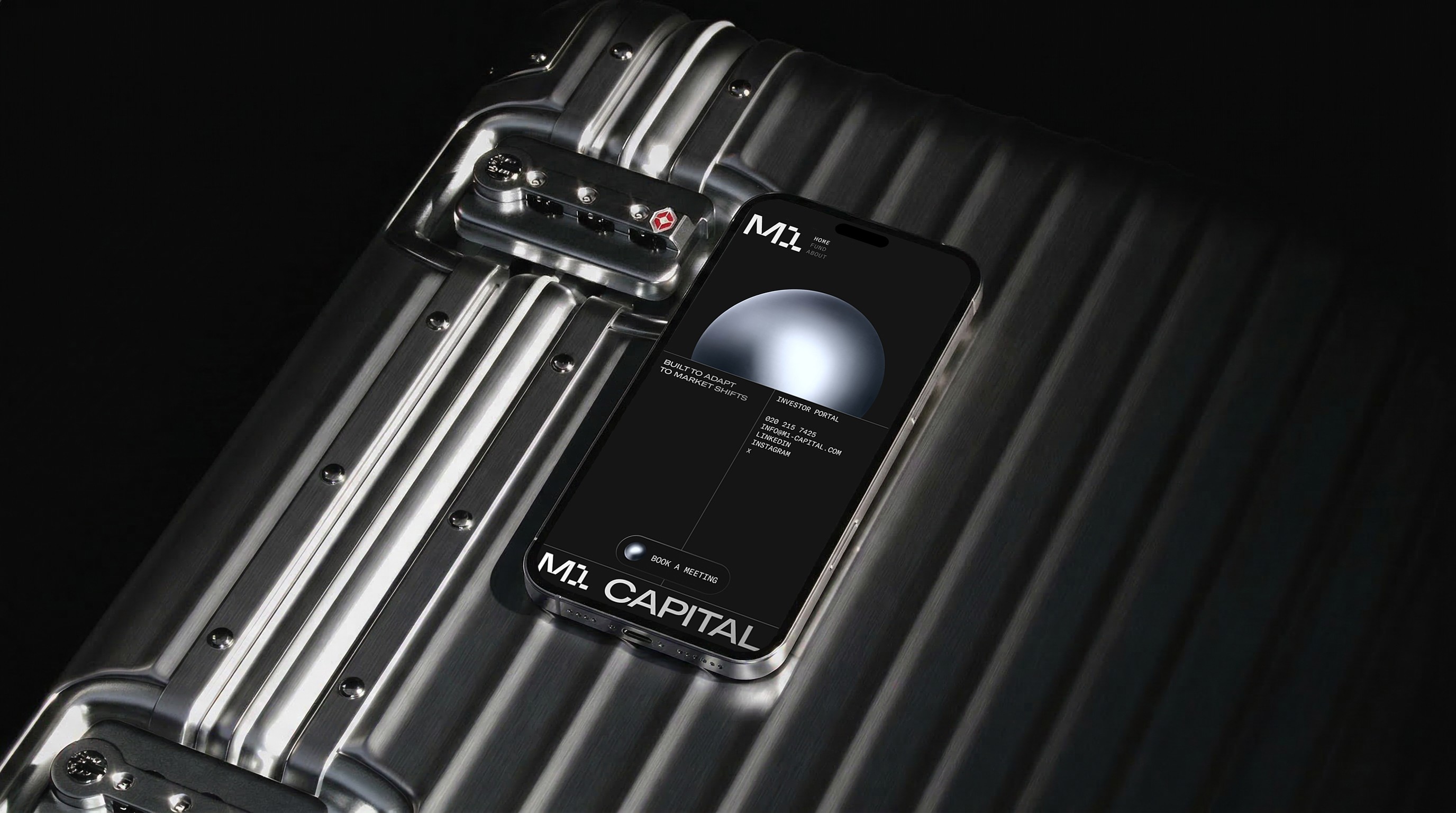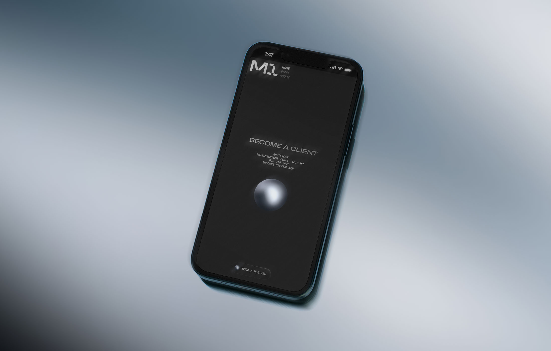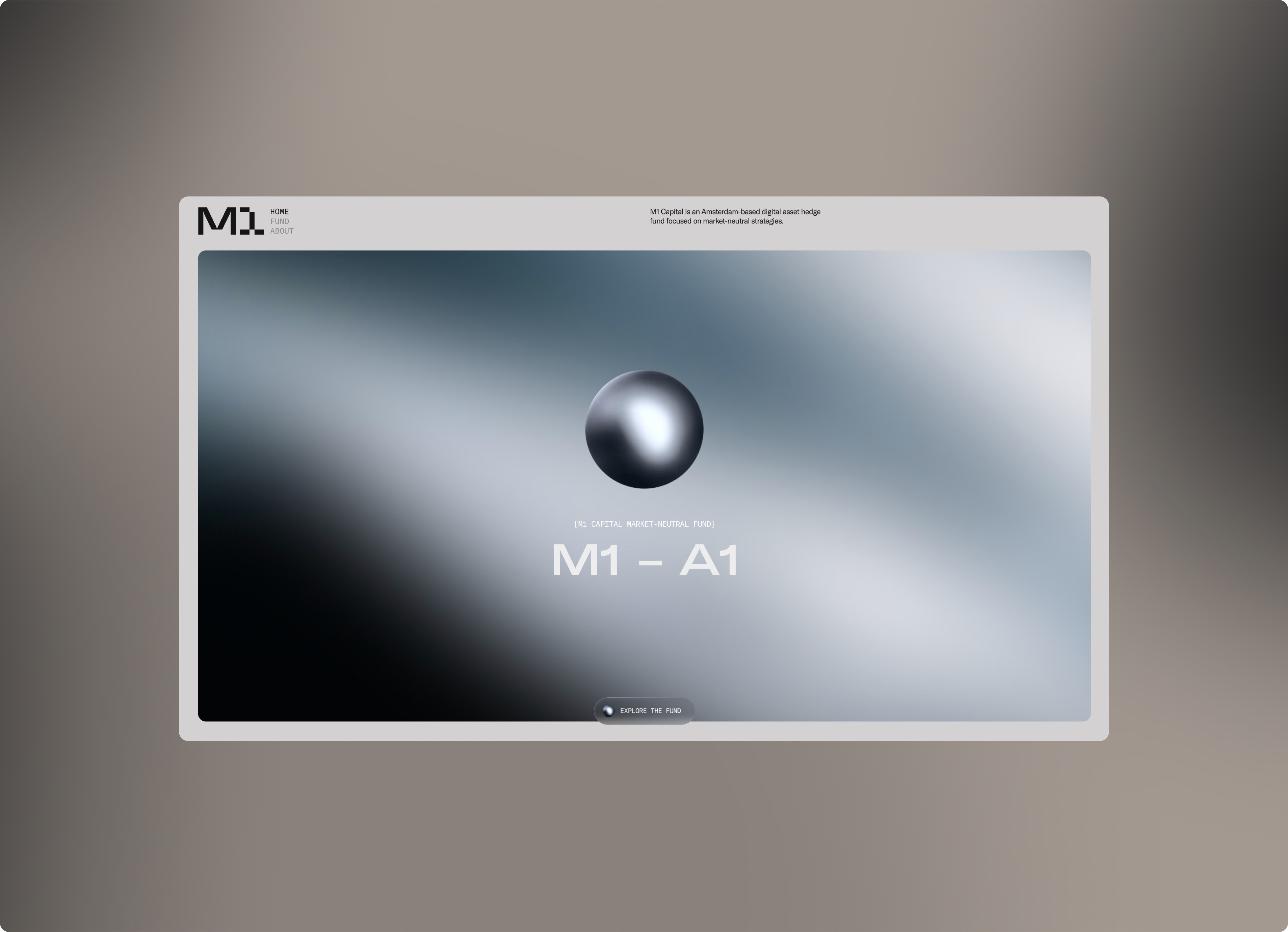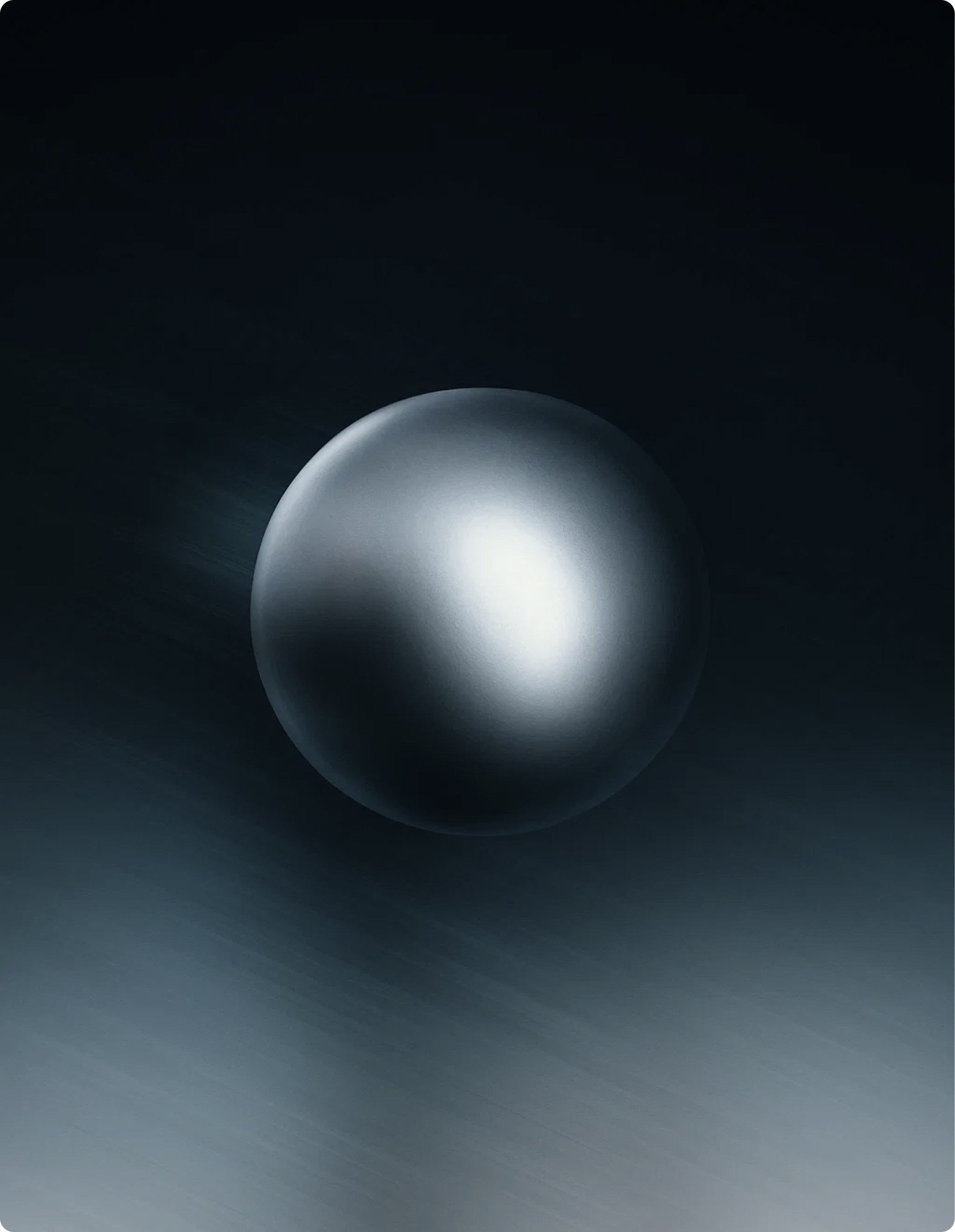 Built for a specific kind of investor, it communicates through restraint. Dark surfaces, liquid gradients, and a single animated sphere replace the usual pitch deck language.