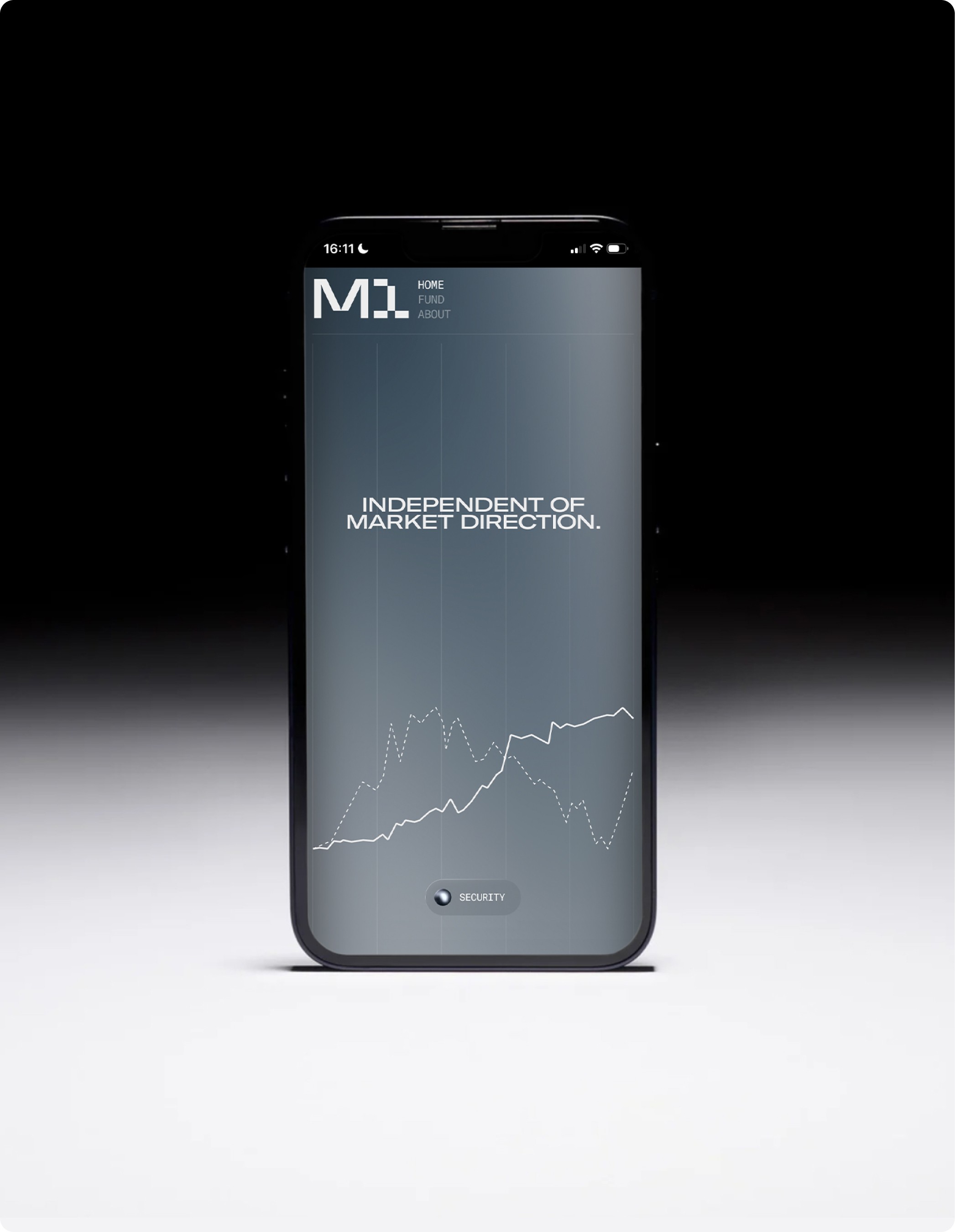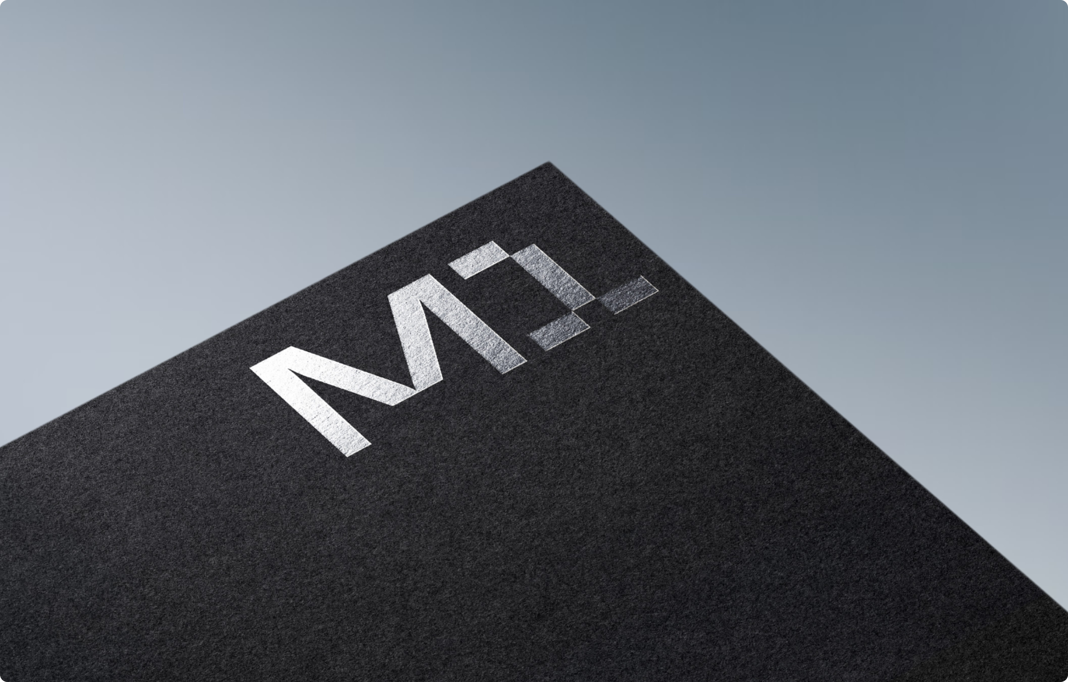 The M1 logotype is built from sharp geometric forms — a structured mark derived from grid logic and circular geometry.